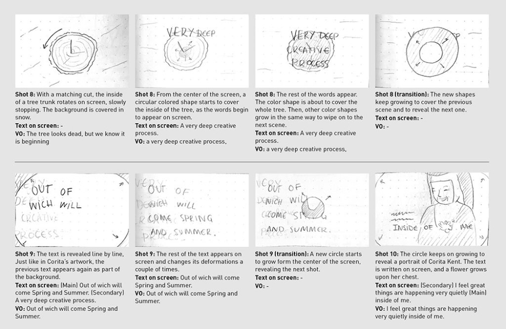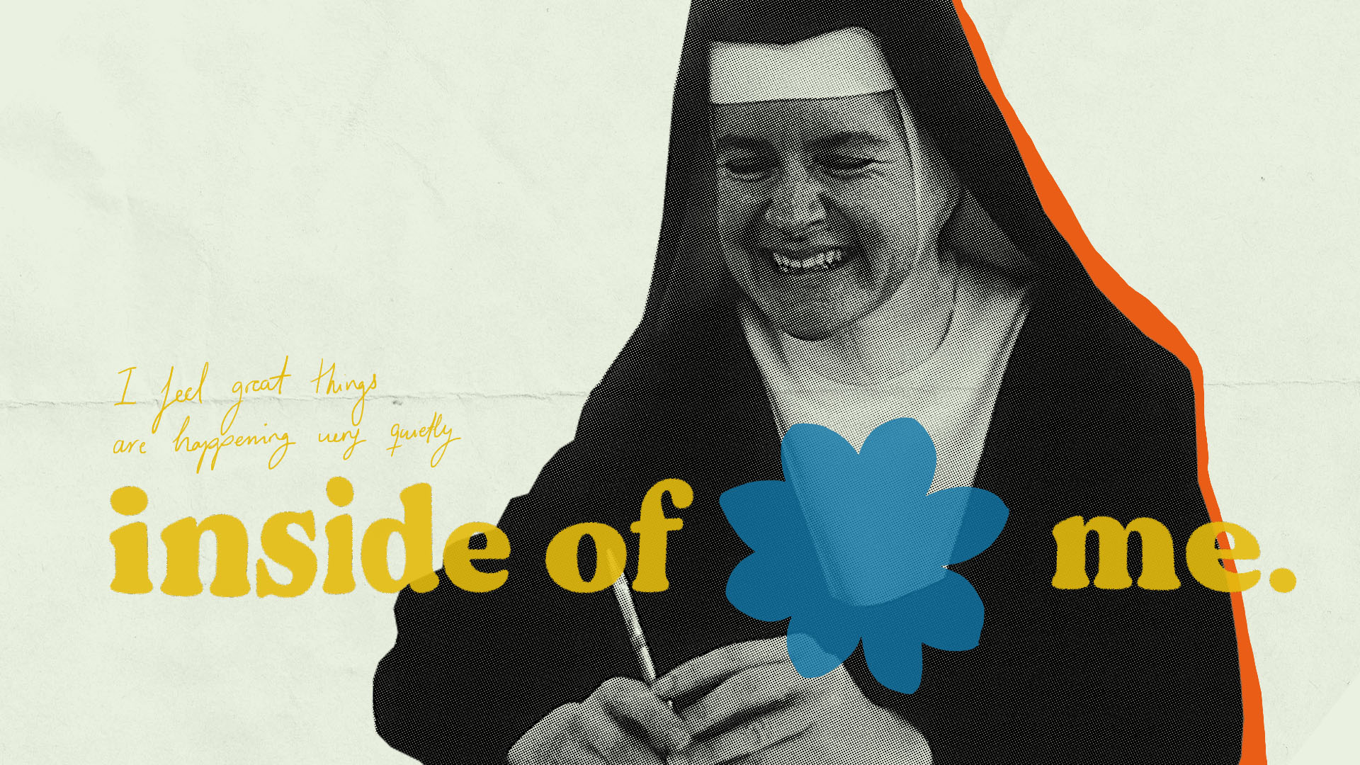 This work aimed to be highly inspired by Corita’s artwork, as well as to reflect the material quality of her preferred media: screen printing. As Corita’s work, it includes elements from the real world, such as photography and video footage. Typography and screen text will play a big role like they do in her own pieces.